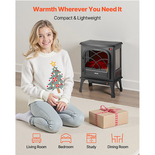 25.5-Inch Freestanding Electric Fireplace Stove Heater, 1500W 5120BTU Portable Fireplace
