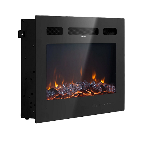 This electric fireplace features taller flames and a flat tempered glass panel, creating a vivid, lifelike look. The realistic logs and crystals enhance the cozy ambiance of sitting by a traditional fireplace, making it a perfect addition to your living space.