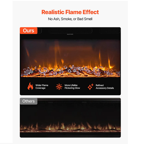 Designed for both wall-mounted and recessed installation, this electric fireplace fits seamlessly into any room style. A detailed installation guide and manual are included to make setup simple and hassle-free.