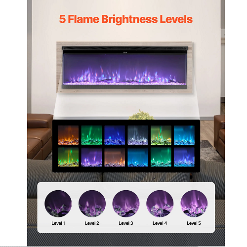 Customize your atmosphere with 5 flame brightness levels and 12 flame colors, including orange, green, blue, and white. Perfectly match your home décor while enjoying the charm of fire without the safety risks.