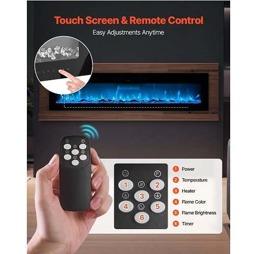 This fireplace supports both mechanical button control and remote control to adjust flame color, brightness, and heat. The 1–8 hour timer allows you to set an automatic shutoff in 1-hour increments, saving energy securely and easily.