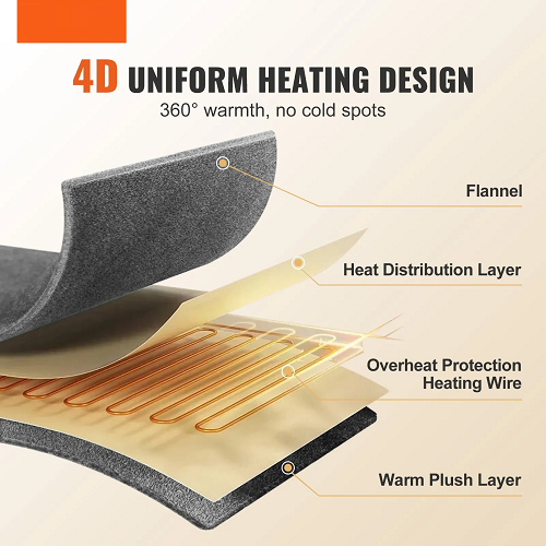 Feel the warmth evenly spread throughout! Our heated blanket features uniformly distributed heating wires that quickly bring you to that perfect cozy temperature, ensuring every inch feels just as toasty as the next.