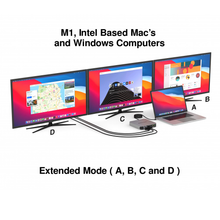 The EZQuest Ultimate Plus Dual HDMI USB-C Multimedia Hub Adapter connects your M series Mac or Intel based Macs as well as Windows computers that are equipped with USB-C, Thunderbolt 3 or 4 to create extended mode displays and expand your work throughout the 2nd and 3rd or even 4th display so you can work faster and more efficiently with up to 4K 60Hz for 1st HDMI display on DP 1.4 and 4K on 2nd HDMI port as well as VGA port on M series and Intel based Macs as well as Windows computers. You can also mirror your computer display to your external display, TV or projector via an HDMI or VGA cable (sold separately).