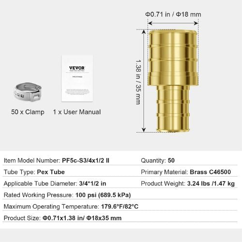 Professional Safety: This set of pipe fittings includes 50x clamp straight and 100 clamps, all meeting the same standards for commercial and residential plumbing applications. Each fitting can withstand pressures of up to 100 PSI and temperatures of 82°C/179.6°F.