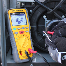 The IRT803 Digital Insulation Resistance Tester has a 600V AC/DC measurement capability and auto ranging. It features a backlit display that shows test function and measured value.