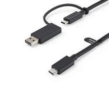 This hybrid 1-meter USB-C to USB-C cable (USB 3.2 Gen 2, 10Gbps) includes an attached USB-A to USB-C adapter (USB 3.2 Gen 1, 5Gbps), allowing you to connect USB Type-C devices such as docking stations, hard drives, tablets, or smartphones to either a USB-C or USB-A port on your computer. It is also fully compatible with Thunderbolt 3 ports for versatile connectivity.