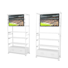 Easily mount a flat-screen TV to the Pipeline Outrigger or Pipeline Freestanding Merchandiser. FInished in a beautiful Gloss White finish to blend in perfectly with our existing Pipeline Fixture Collection.