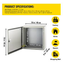 NEMA 4X Steel Enclosure 16 x 16 x 8'' Electrical Junction Box IP66
