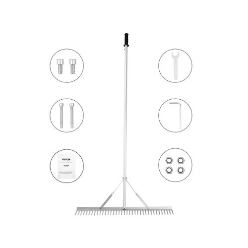 Aluminum landscape rake features a 36-inch head and 75-inch non-slip handle, providing extended reach for effortless cleaning of hard-to-reach areas. Ideal for leaves, stones, and floating debris, it improves efficiency by covering more ground with less movement. Designed for both land and water, it’s perfect for leveling soil, tidying gardens, clearing ponds, and removing lake debris. Its versatile, multi-purpose design makes it a valuable tool for maintaining neat outdoor spaces while saving time and effort.