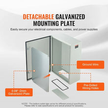 • Flexible Design, Easy Wiring: The electrical enclosure box comes with a detachable galvanized mounting plate, making it easy to secure electrical components, cables, and power supplies. Plus, pre-drilled outlet holes at the bottom allow for convenient cable entry and exit, streamlining the wiring process (Bottom outlet size varies by product specification, so please refer to the size description and the actual product for accuracy)