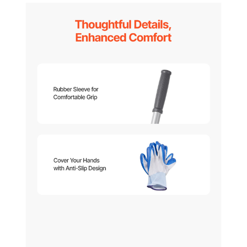 The 4-section adjustable handle accommodates users of different heights, while the anti-slip rubber grip ensures a secure and comfortable hold. The 180° rotating head eliminates the need for heavy lifting, making yard work easier and less tiring.