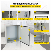The electric enclosure box is crafted from high-quality carbon steel. Precise lock design, high-strength hinges, and rain hood are all used to secure your plug-ins, power cords, and other equipment from harsh weather effects. Widely used for indoor and outdoor applications, such as electricity, construction, and other industries. A robust well-crafted electrical enclosure box provides optimal protection and ensures consistent performance all year long.
