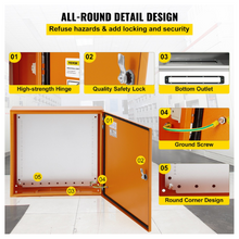 The electric enclosure box is crafted from high-quality carbon steel. Precise lock design, high-strength hinges, and rain hood are all used to secure your plug-ins, power cords, and other equipment from harsh weather effects. Widely used for indoor and outdoor applications, such as electricity, construction, and other industries. A robust well-crafted electrical enclosure box provides optimal protection and ensures consistent performance all year long.