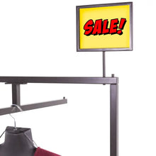 Linea sign holder holds a 5-1/2"H x 7"W sign. Holder has a 4" swedge stem to fit in the top of Linea Fixtures.