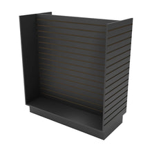 • The gondola slatwall merchandiser with a black melamine finish lets retailers do more with their sales floor. It only takes up 8 square feet of floor space, measuring at 24" D x 49½" W x 54" H, while providing 48 square feet of display space.