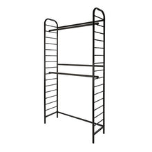 The unit measures 16"W x 48"L x 88"H, is made from strong 1¼" round tubular steel and has a chip- and scratch-resistant black epoxy finish.